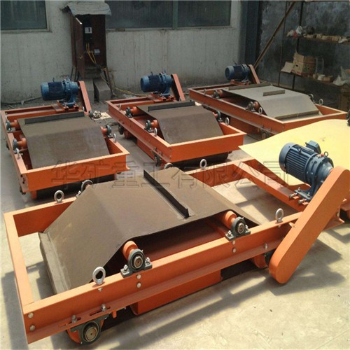 永磁除鐵器是利用磁鐵吸附鐵制品的特性,在有效范圍內(nèi)實現(xiàn)除鐵的效果。永磁自卸式除鐵器是由釹鐵硼永磁磁芯,棄鐵皮帶、減速電機(jī)、框架、滾筒等部分組成,與各種輸送機(jī)配套使用,用于從非磁性物料中自動清除鐵磁性物質(zhì),用于物料中含鐵較多的場合。